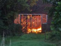 03-08-2015 - Bij een stalbrand in het Groningse Sebaldeburen zijn zondagochtend dertien kippen om het leven gekomen.