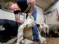 Eerste ronde schapen scheren op landgoed Nienoord in Leek