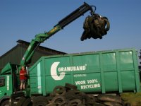 26-07-2012 - De bandeninzameling in het kader van LTO Commerce zorgt voor veel werk bij bandenverwerker Granuband in Amsterdam, die de banden ophaalt en verwerkt.
