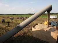 23-08-2012 - De eerste oogst van lupinen bij varkenshoudster en LTO-vakgroepvoorzitter Annechien ten Have staat op stapel.