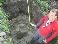 30-09-2013 - Rob Simmons, docent bodem van Universiteit Cranfield, is enthousiast over de kracht en snelheid waarmee luzerne wortelt.