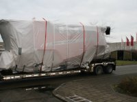 13-02-2013 - Massey Ferguson (MF) voorziet haar opgeleverde combines voortaan op de productielocatie in Italië van een totaal bedekkende beschermhoes. Daarmee zijn ze tijdens transport beter beschermd...