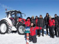 09-12-2014 - Met een MF5610 heeft tractor girl Manon Ossevoort na 17 dagen en 2.500 kilometer de Zuidpool bereikt.