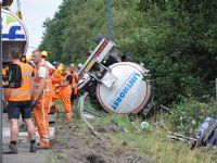 Melkwagen kantelt bij Marum