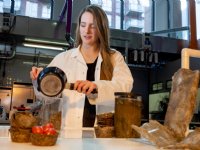 Student maakt verpakkingen van koeienmest