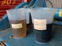 Krijtsuspensie over uitgereden mest