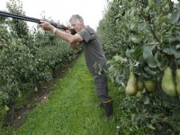 03-08-2016 - Op Fruitbedrijf van Herten in Grathem wordt het nieuwe zangvogelafweersysteem getest.