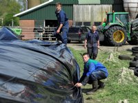 13-05-2015 - Klaas, Popke en Lieuwe Dijkstra uit Nij Beets bij Drachten hebben dinsdag doorgezaaid muizenland ingekuild. Ze kuilden 25 hectare van de 70 hectare in.
