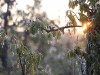 25-03-2014 - Uit berichten op onder meer Twitter blijkt dat vannacht in veel fruitgebieden op vrij grote schaal is beregend om nachtvorstschade te voorkomen.