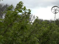 11-04-2013 - Een ventilator boven een aanplant met blauwe bessen moet door warme bovenlucht te mengen met de koude lucht tussen het gewas de kans op nachtvorstschade verkleinen.