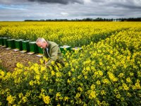 17-04-2014 - Akkerbouwer Boelo Tijdens uit Nieuw Beerta vreest voor schade in zijn koolzaad na de nachtvorst van dinsdag op woensdag. 'Het koolzaad bloeit vier weken eerder dan vorig jaar.'