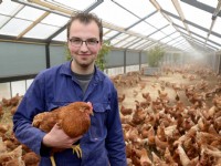 25-11-2016 - René Beek in Barneveld houdt hennen met onbehandelde snavels in een volièrestal, voorzien van uitloop. De resultaten van de eerste ronde zijn goed: de hogere eierprijs compenseert de hogere...