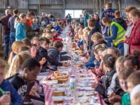 21-09-2019 - Maar liefst 190 leerlingen, afkomstig van bijna alle basisscholen op Texel, namen woensdag plaats aan lange gedekte tafels voor een ontbijt midden in de stal van Anton en Manuela Bakker in...