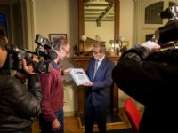 21-11-2014 - RMO-chauffeur Aijolt Eggens uit Witteveen heeft deze week een kleine 1.900 handtekeningen voor een veiligere overweg overhandigd aan de gemeente en ProRail.