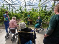 Ouderen genieten van optreden zingende fruitteler