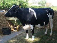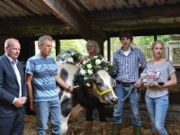 26-06-2012 - Koe Anna 49 van familie Sikkema in Harkema is vanmiddag gehuldigd als de oudste melkgevende koe van Nederland. Dat gebeurde door Kees Romijn, voorzitter van LTO-vakgroep Melkveehouderij.