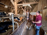 28-07-2017 - Melkveehouder Frans Zeinstra uit Noardburgum maakt ruin Cash klaar voor de paardenmarathon Driezum-Wâlterswâld.