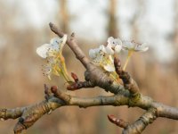 30-12-2015 - Door het warme winterweer beginnen de perenbomen van Giel van Herten uit het Limburgse Grathem al te bloeien.