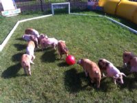 03-08-2013 - De biggen in Piggy's Palace, van varkenshouder Erik Stegink uit Bathmen, hebben een wel heel luxe onderkomen. Behalve een uitgebreide weide met modderpoel en schuilhut, hebben de biggen nu...