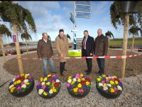 13-01-2012 - Met het doorknippen van een lintje heeft wethouder Breunis van de Weerd (Ede) vandaag de nieuwe rotonde op de toegangsweg naar Plantion, op het Bedrijventerrein A12 in Ede, officieel in...
