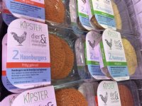 19-02-2018 - De eerste haanburgers van Kipster liggen in de schappen bij de Lidl. De burgers worden gemaakt van het vlees van kipsterhanen. De hennen worden gehouden in een nieuwe stal in Venray.