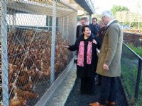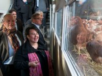 07-04-2014 - Staatssecretaris Sharon Dijksma gaat met de pluimveesector bezien welke mogelijkheden er binnen de bestaande bedrijfsvoering zijn om pluimvee bedwelmd aan te hangen.