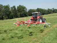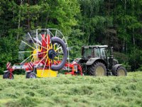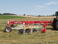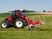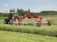 31-03-2014 - Pöttinger heeft de TopTech plus-rotoren van de grotere harken ook op de kleinere harken met middenafleg gezet.