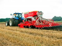 12-08-2015 - Jeroen van Rulo uit Midwolda zaaide gisteren een vanggewas met een getrokken Pöttinger Terrasem C4 Fertilizer demonstratiemachine.