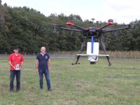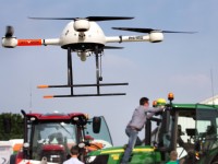 12-06-2015 - Op de Agro Innovatiedag in Dronten was gisteren een grote drone te zien die gewasbescherming kan uitvoeren en 80 liter spuitvloeistof kan meenemen.