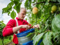 04-09-2015 - Akkerbouwer en fruitteler Wirtjo Molema uit Nieuwolda is tevreden over de pruimenoogst. 'De pruimen hangen mooi dit jaar. Ze zijn goed gedund, waardoor je mooie dikke pruimen krijgt.'