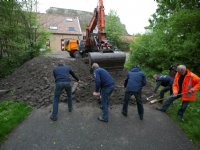 10-05-2013 - Boeren en bewoners in de polders bij Rhoon hebben vanochtend als protest een hoop grond bij de ingang van recreatieterrein Hoge Veld verplaatst naar het kantoor van het Natuur- en...