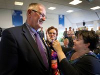 24-06-2014 - Hilbrand Sinnema, voorzitter van LTO Noord Groningen, is gistermiddag door staatssecretaris Sharon Dijksma (EZ) geridderd in de Orde van Oranje-Nassau.
