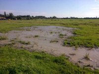 30-07-2013 - Bij de aanleg van een persleiding in de Grote Westeindse Polder in Stompwijk is een slootbodem omhooggekomen en zijn er scheuren ontstaan in een landbouwperceel.