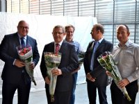 04-11-2015 - Met de overhandiging van een bosje duurzame bouvardia’s aan wethouder John Nederstigt van gemeente Haarlemmermeer werd maandagmiddag de demolocatie gelijkspanning in Rijsenhout gestart.