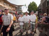 20-07-2013 - Willy Derks van het Rondeel in Ewijk loopt mee in de Vierdaagse van Nijmegen. Samen met zijn zoons Willem (14) en Jesse (12) promoot hij daar het Rondeel-ei.