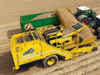 28-08-2020 - Het bijzondere voordeel van de ROPA Keiler 2 Classic met dubbele bunker is het zacht scheiden en sorteren van aardappelen in ondermaatse maten direct op de aardappelrooier.