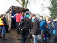 Schaatsers Giethoorn in veewagens vervoerd