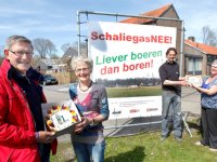 21-04-2015 - Mechanisatiebedrijf Naaktgeboren in Tollebeek kreeg vanmiddag het honderdste spandoek uitgereikt dat zich uitspreekt tegen het boren naar schaliegas in de Noordoostpolder (NOP).