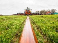 20-04-2017 - De Tjalma Hydrodisc sleepslang bouwlandbemester is 12,25 meter breed. Deze nieuwe machine draait bij Loonbedrijf Jansen in Tiendeveen en was deze week voor het eerst in het veld te zien.