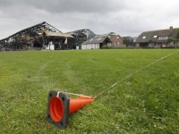 02-08-2017 - Het opruimen van de afgebrande varkensstal in Erichem gaat twee maanden duren. De werkzaamheden worden bemoeilijkt door het in de stal aanwezige asbest.