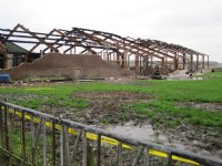 02-08-2017 - Het opruimen van de afgebrande varkensstal in Erichem gaat twee maanden duren. De werkzaamheden worden bemoeilijkt door het in de stal aanwezige asbest.