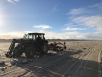 Loonbedrijf harkt strand Terschelling schoon