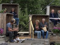 14-07-2020 - Frans Wolters uit het Gelderse Groessen heeft deze zomer op zijn voormalige huisperceel een fruitkisttheater. Zo'n veertig bezoekers kunnen op veilige afstand van elkaar in de boomgaard...