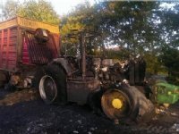 23-09-2014 - Een trekker is vanochtend uitgebrand in Balkbrug, meldt VechtdalCentraal. De silagewagen vol maïs bleef gespaard.