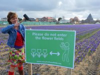 24-03-2018 - Vijfhonderd borden met de tekst 'Please do not enter the flower fields' worden de komende weken in de Bollenstreek geplaatst om toeristen uit de velden te houden.