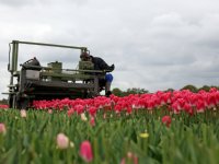 25-04-2014 - Na het paasweekend en na alle belangstelling voor tulpenroutes zijn deze week met name de vroegere tulpenpercelen in Flevoland op grote schaal gekopt.