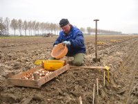 28-10-2013 - In de showtuin van Stichting Kleurrijk Flevoland in de Noordoostpolder (tussen Creil en Rutten) werd afgelopen week gewerkt aan het inplanten van zo'n tweeduizend soorten tulpen.