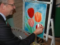 15-04-2013 - Henk Kamp, minister van Economische Zaken, heeft vanmiddag in Creil het Tulpenfestival 2013 geopend. Hij deed dit door mee te schilderen aan een tulpenschilderij, dat hij aansluitend...