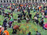 20-01-2014 - De Nationale Tulpendag in hartje Amsterdam trok afgelopen zaterdag de aandacht van naar schatting 15.000 mensen. Iedereen kon in de grote pluktuin een bosje tulpen scoren.