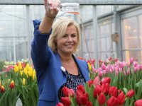 15-01-2015 - Rode Kruis-ambassadrice Irene Moors doopt de tulp 'Red Heart' in het Testcentrum voor Siergewassen van bemiddelingsbureau Hobaho.
